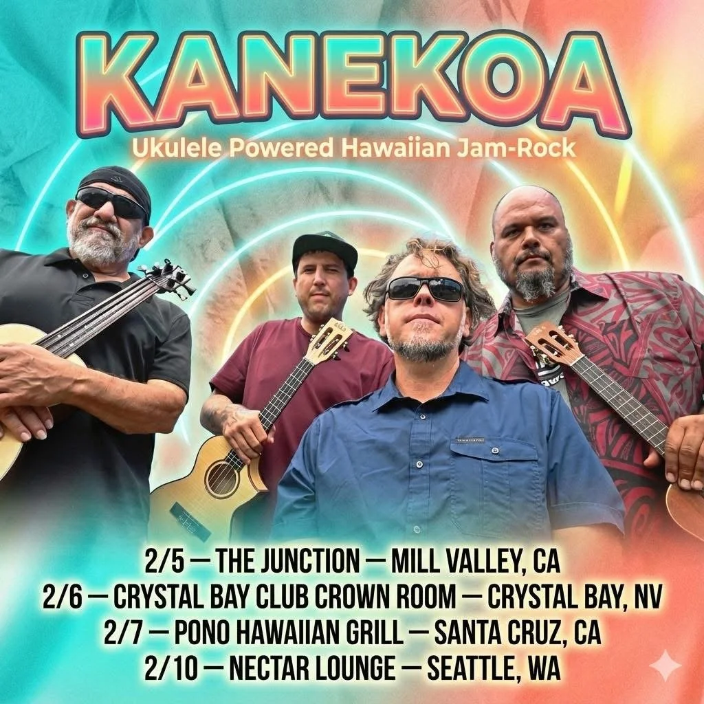 Kanekoa is one of Hawaii’s premier live music experiences. Sailing in on a wave of multi-layered sound, the Maui band has become a global phenomenon and has won Nā Hōkū Hanohano Awards (Hawai’i’s “Grammys”).